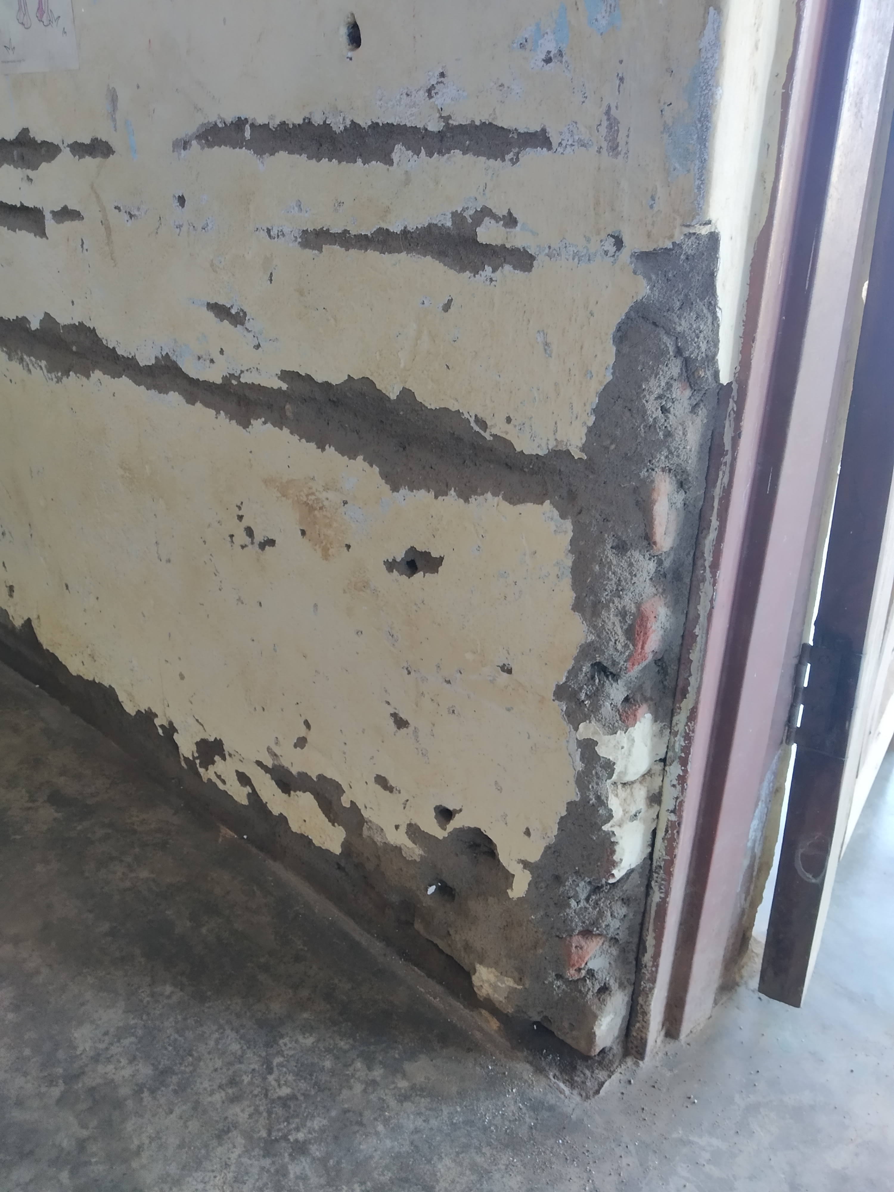 We zijn erg geschrokken van de staat van het gebouw van Child-day-care 1. Dit gebouwtje staat aan het begin van het dorp. In 2015 en 2019 is tijdens een storm het dak eraf gewaaid en hebben we er een nieuw dak op laten zetten. In 2015 was het ook helemaal gerenoveerd en in 2019 zijn delen bijgewerkt en geschilderd. En nu, nu ziet het er zo uit.